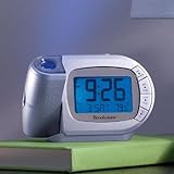 Projection Clock. Our projection clock displays the time on your wall or ceiling with just the touch of a button. No more rolling over and squinting--with our projection clock you dont even have to move your head! The included AC adapter lets you leave the projector on continuously, so just open your eyes to see the time in large digits on your wall or ceiling. The display screen shows the time, date, day of the week and indoor temperature. Full alarm clock functions including snooze. Uses 3 AA batteries (not included) or AC adapter (included). Features: See the time on your wall or ceiling, With the included AC adapter you can leave the projector on continuously, The display shows the time, date, day of the week and indoor temperature more...